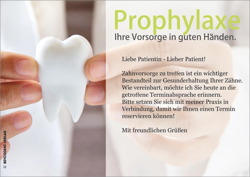 Zahnvorsorge-Karte Packung 100 Stück DIN A6, Hände mit Zahn