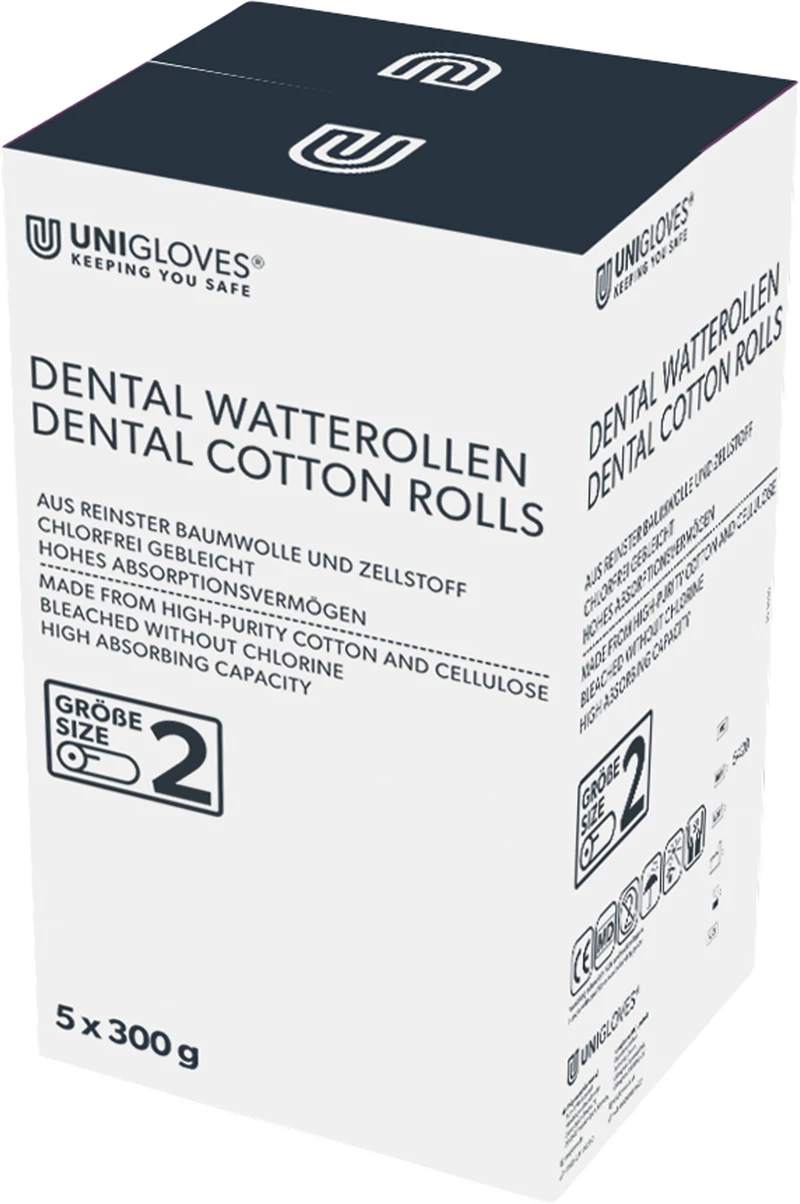 Zahnwatterollen Karton 5 x 300 g Ø 10 mm x 38 mm, weiß, Größe 2