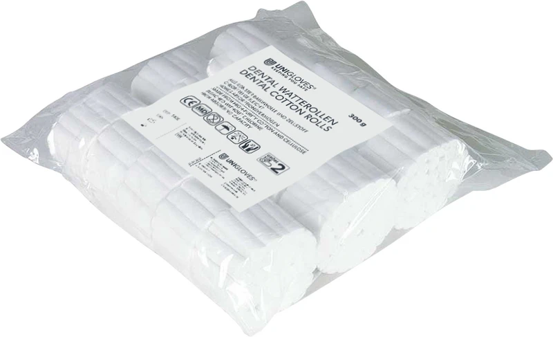 Einweg Zahnwatterollen aus chlorfrei gebleichter Baumwolle.