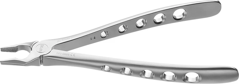 - Verbesserte Geometrie, Längsverzahnung und schlankere Branchen bieten einen tieferen und trotzdem stabilen und sicheren Griff der Krone und der Wurzel und reduzieren damit das Risiko einer Zahnfraktur