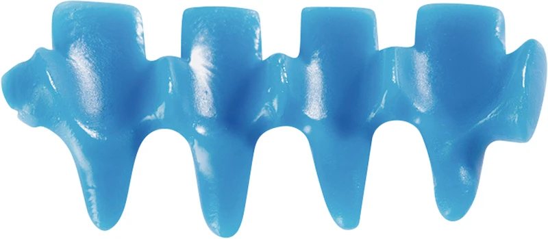 Die Form unserer Zwischenglieder entspricht einer gleichmäßigen Reduzierung natürlicher Zähne. Da es alle Zwischenglieder nur in einer Größe gibt, wurde diese so gewählt, dass sie in 90 % der Anwendungen passen.